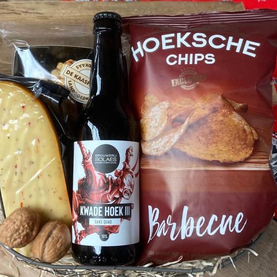 Mandje met wat hartigs en een lekker Flakkees biertje.