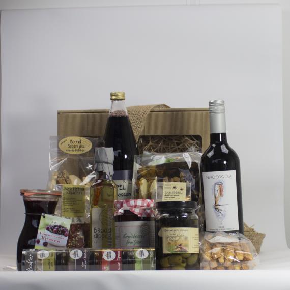 Een pakket van de bovenste plank, gevuld met een grote diversiteit aan producten.